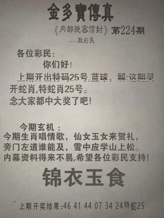 上篇:225期金多寶傳真
